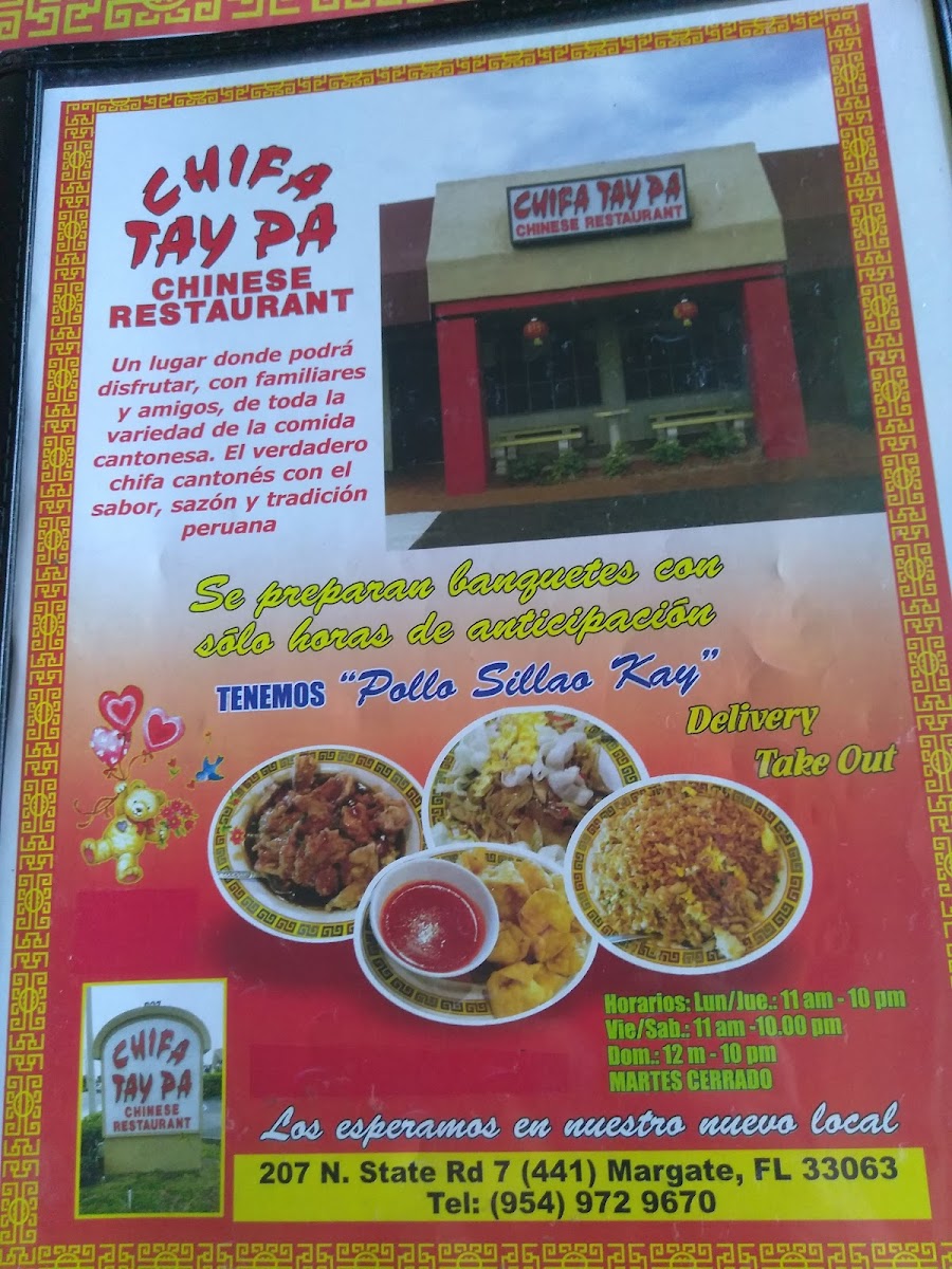 Welcome to Chifa Tay Pa, a gem nestled in Margate, FL, where the vibrant flavors of Peruvian-Chinese cuisine come alive. This unique restaurant is celebrated for its fresh ingredients and lightning-fast service, ensuring every visit is a delight.